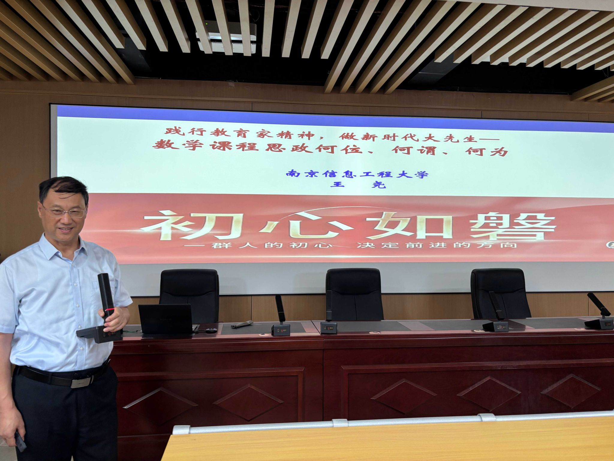 为进一步提高学院教师课程思政水平,2025年10月10日下午,数学学院特邀南京信息工程大学王尧教授作题为“弘扬教育家精神,做新时代大先生——数学课程思政何位、何谓、何为”的报告。报告由数学学院院长张玲玲教授主持,长沙学院原校长黄立宏教授,及全体专任教师参加报告会。