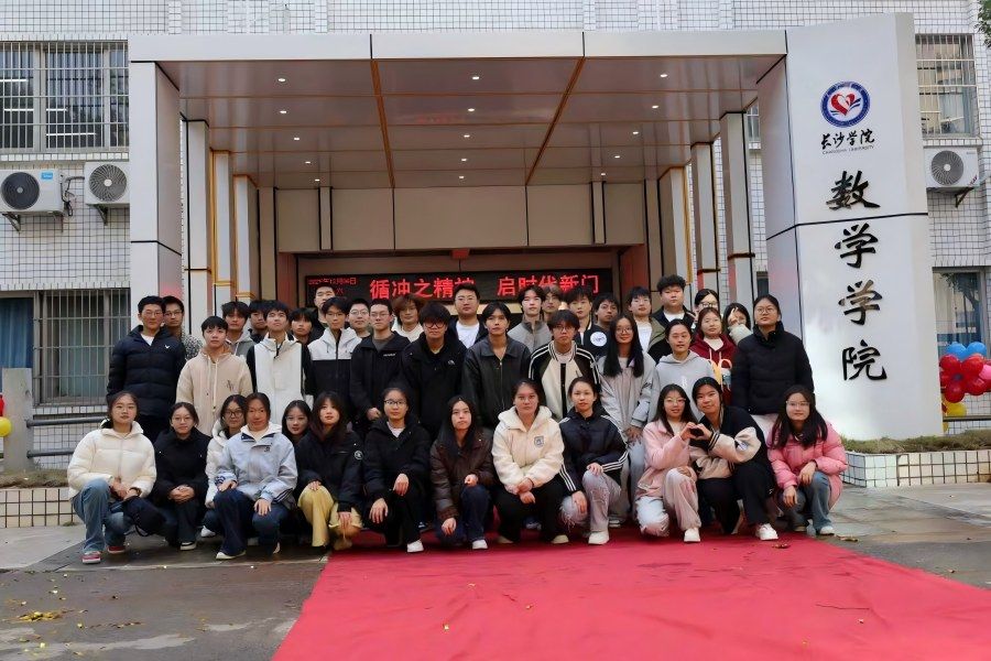2025年12月6日上午,长沙学院数学学院焕然一新的院门前彩旗轻扬,“循冲之精神,启时代新门”的主题语在晨光中熠熠生辉。一场简约而庄重的揭牌仪式在此举行,为学院成立三周年留下生动注脚。