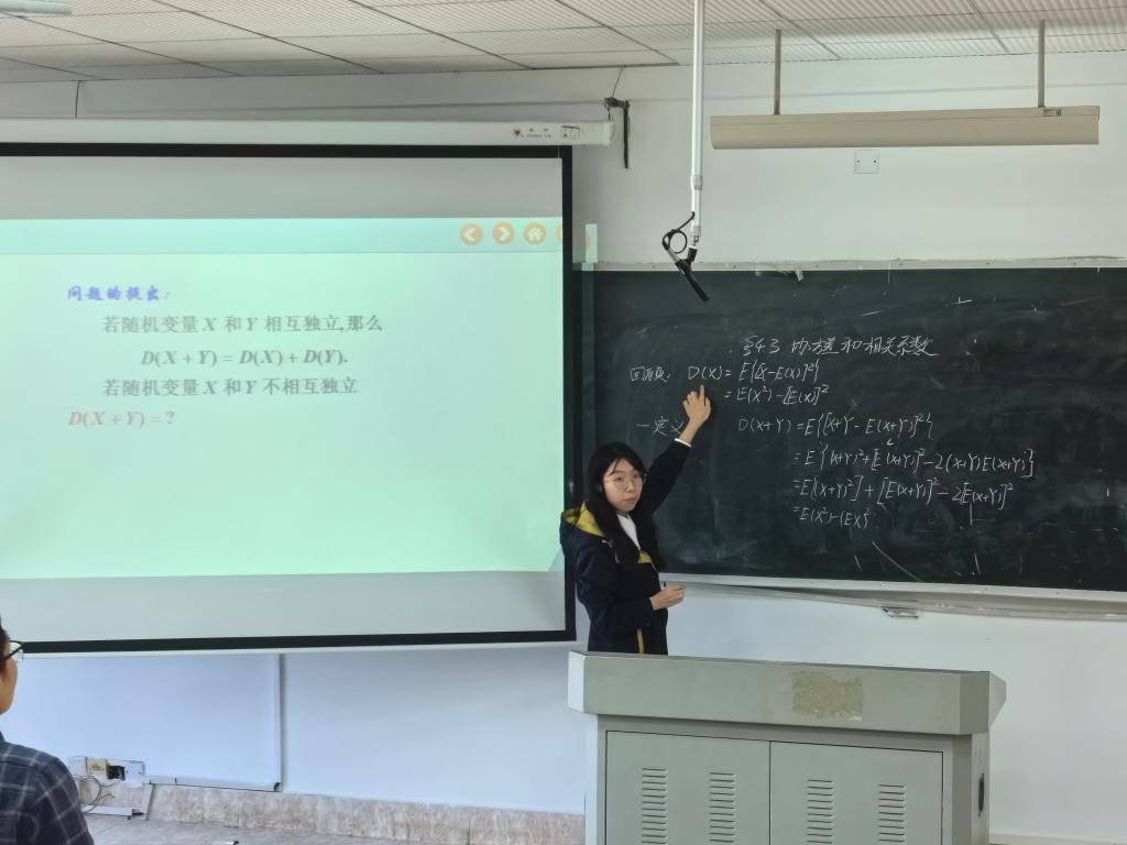 梁敏博士讲述《概率论与数理统计》课程中的相关系数的计算方法。教学设计完整、脉络清晰,内容丰富,课件精心打磨,知识点讲解透彻。李雪梅博士展示了融入信息化教学手段的《高等数学》中的旋转曲面。课件精美,内容生动,深入浅出,教书与育人并举。两位老师为全院教师展示2堂高水平的示范课。会后参与听课的老师积极互动,畅所欲言,从教学内容、课堂设计、重难点把握等方面进行了交流。大家纷纷表示,在以后的教学中,要充分积累教学素材,精心设计每堂课,展示好每节课,将立德树人这一根本任务贯穿到教学的全过程。