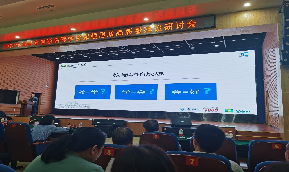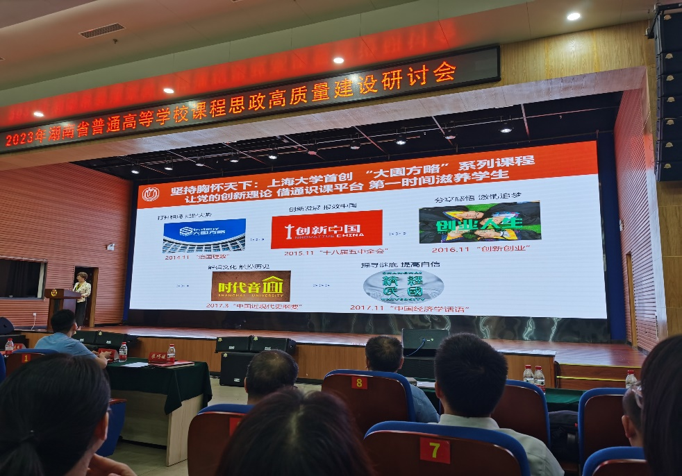 会上上海大学顾晓英教授、北京理工大学赵洱岽教授和湖南大学刘正光教授等三位教育部级课程思政名师分别做了《二十大精神有机融入课程,推动课程思政高质量建设》、《数字化时代专业课课程思政的设计、建设与实践--以国家课程思政示范课程为例》以及《四重构四融合提升教师立德树人能力》的主题报告。南华大学李晓昀副教授、国防科技大学赵云副教授和湖南大学周思静副教授就课程思政教学比赛进行了赛事经验分享。