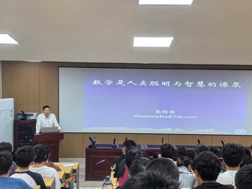 为提高学生数学学科素养,增强学生的专业学习兴趣,2023年10月27日晚数学学院国家级教学名师朱传喜教授在致远楼(北楼)5001给数学学院23级全体新生做了一场“数学是人类聪明与智慧的源泉”的精彩科普报告,报告由数学学院副院长张作政主持。朱教授的报告从数学的定义、数学是新时代的宠儿、数学是人类聪明与智慧的源泉、数学是科学的女王四个方面诠释了数学学科特点,充分展示了数学学科的重要性,广泛性。报告指出数学是研究数量关系、空间形式和序结构的一个学科;数学是科学技术发展的桥梁,数学是人类解开愚昧走向文明的使者,数学是人类聪明与智慧的源泉,数学是科学的女王,数学同样是人类智慧皇冠上最灿烂的明珠。讲座后,同学们普遍反映收获颇丰,对数学学科有了更进一步的,更深刻的认识。