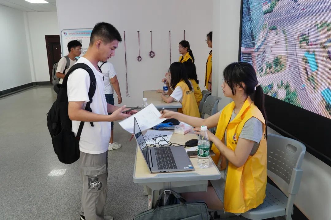 致远楼北栋设有多个报名登记点,并有数名志愿者协助新生登记,帮助新生们更快完成入学。