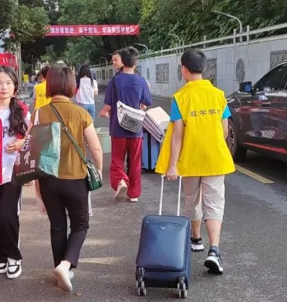 学院摆设的迎新点等待新生入校,那里有热情的学长学姐为新生指引方向,用暖心的服务为新生的“大学第一天”保驾护航。