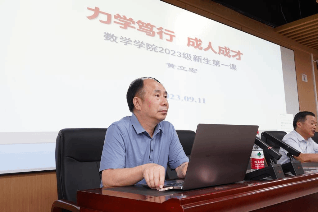 开学典礼结束后,长沙学院原党委副书记、校长黄立宏教授为数学学院2023级全体新生开展开学第一讲。黄教授从什么是大学,什么是数学,如何学好数学专业三个方面,结合自身理解与实践,为同学们讲授开学第一课。他希望同学们通过四年的学习,能培养批判性思维、爱国、奋斗和创新精神,提高沟通能力,加强团队协作,积极创新求变,不断提高自身的思考、学习、自控、表达和坚持的能力,珍惜大学时光,不负青春韶华。