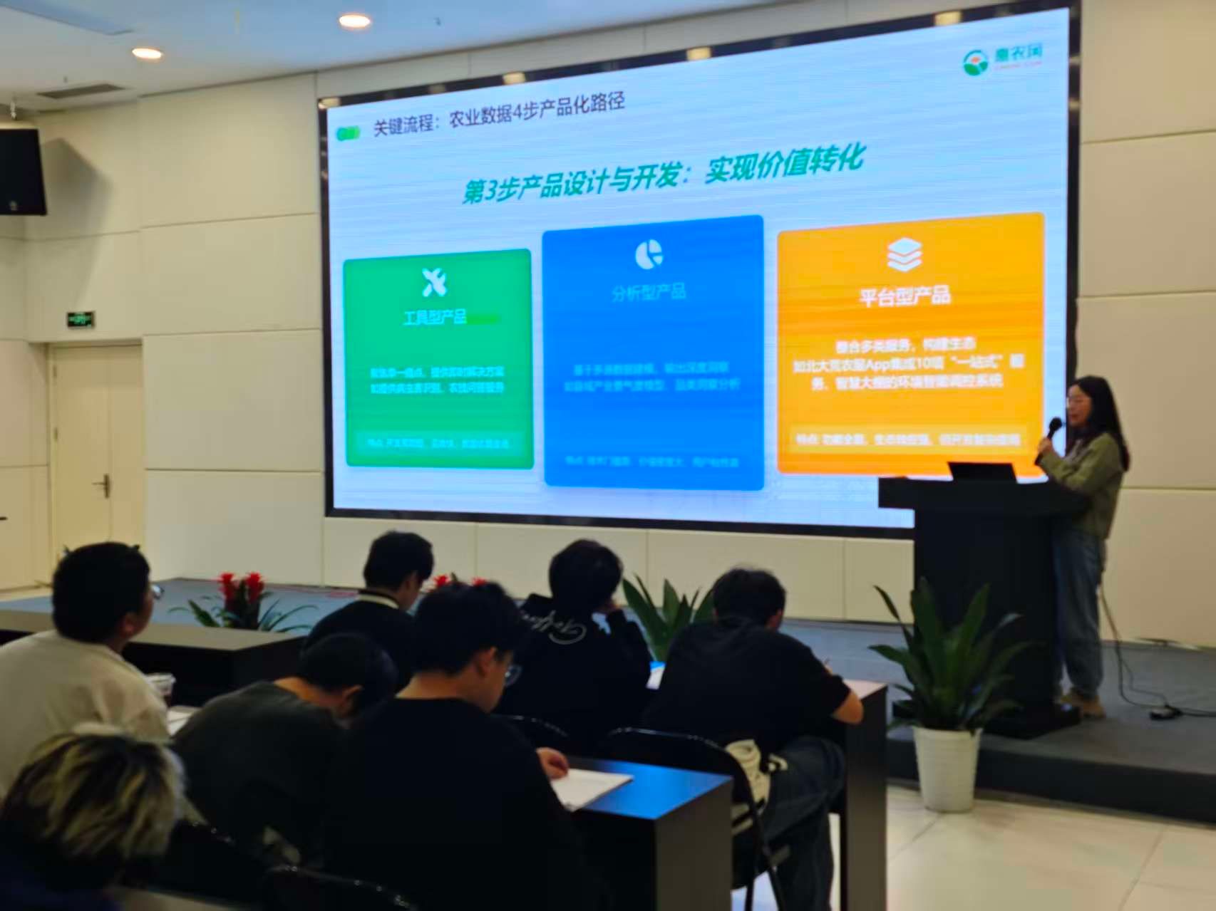惠农网李彬彬老师做了题为《农业大数据产品开发与实践》的报告。详细介绍了惠农网数字化产品的开发流程和商业价值,展示了惠农“互联网农产品电商市场运行监测”大数据可视化平台等数字化产品。