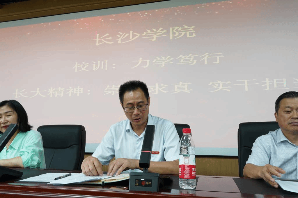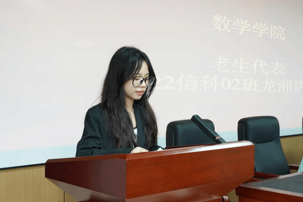 教师代表陈翰麟从数学学科背景、大学生职业选择和未来人生规划等领域提出了自己科学的建议和指导,希望同学们在未来的学习和生活中能够保持初心,坚定信心,在遇到困难时不退缩、不放弃,做一个迎难而上的勇敢者。2022级数学专业老生代表龙湘从如何调整自己的学习心态、如何把握属于自己的生活节奏、如何打破“信息壁垒”这三个主题向全体2023级新生分享了自己的大学生活经历。2023级数学专业新生代表吕雅琪表达了对大学生活的美好向往,并表示将继续保持良好的学习习惯,敏而好学,孜孜不倦,在长沙学院不断追求并实现自己的梦想。
