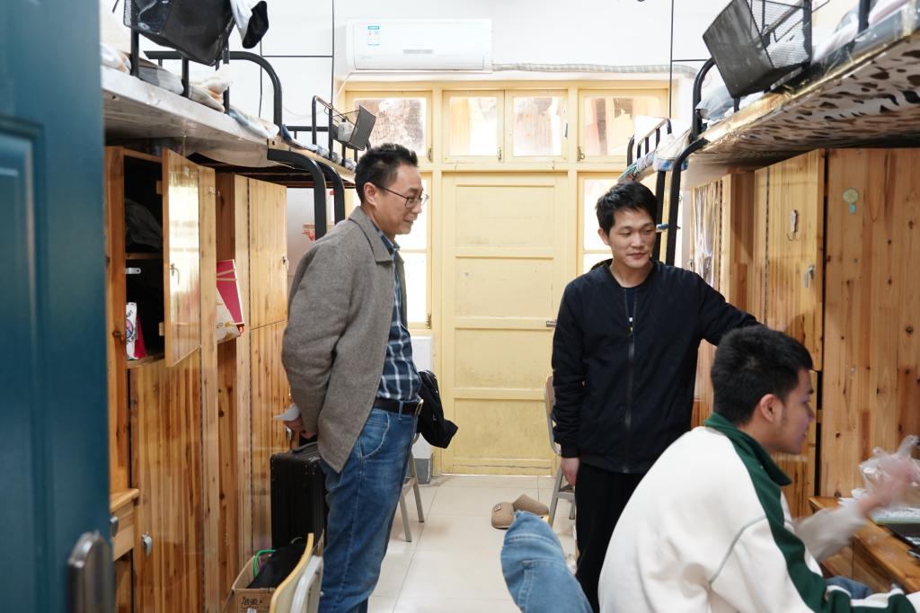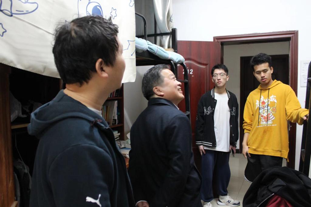 为进一步落实学校“三全育人”工作要求,扎实做好学生日常管理服务,提高学生五一假期安全防范意识,数学学院党总支书记谭义红,院长彭向阳,副院长张作政、阳超,班主任张逵、陈翰麟、易玉莲、学生辅导员分组走访学院所有学生寝室,深入了解学生思想动态、假期安排、学习生活和就业等情况,同时开展了节前寝室安全大检查并向同学们送上节日祝福。
