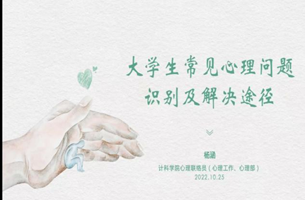 本次培训分为两个专题,分别是《学会发现问题、畅通信息渠道》和《大学生常见的心理问题识别及解决途径》,由计科学院心理部部长姜一帆主持,数学学院心理联络员刘钰清老师、计科学院心理联络员杨涵老师主讲。培训对象为数学学院心理部全体成员,21级、22级所有的心理委员和宿舍信息员以及计科学院土木学院朋辈队伍,共计200余人。