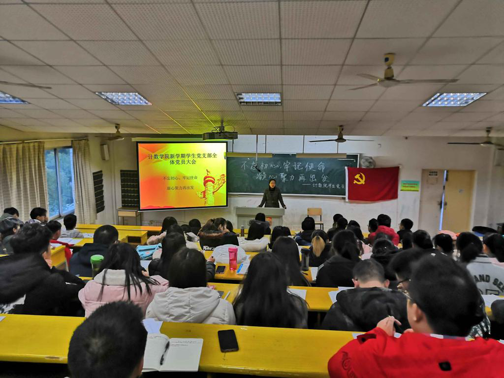 2019年3月5日下午17:30,计算机工程与应用数学学院学生党支部以“不忘初心,牢记使命,凝心聚力再出发”为主题,在致远楼2401举行了新学期第一次全体学生党员大会,党总支副书记王芳、各学生党支部书记出席,学生党员参加会议。
